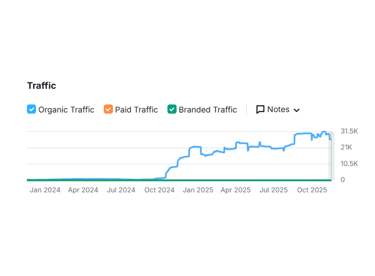 Achieved an average organic traffic growth of 300-600% within 6-12 months for various projects.