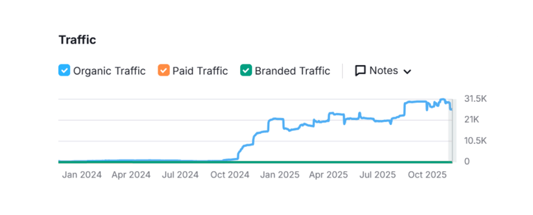 Scaled projects from 2,000 to over 20,000 organic visits per month in just 8-10 months.